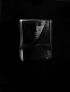 In his most personal works, Bulgarian photographer Martin Atanasov increases as much as possible the distance, the separation, to capture something intimate, which could appear as a paradox: he uses black and white rather than the whole range of colors, captures faces through textured materials, creates halos, and during the development process, he reworks the material as a mixed-media artist, cutting and deforming the image to recompose a new one… thus sharing with the viewer a subjective impression constructed with powerful shape and light contrasts, rather than a documentary picture of the objective moment. His use of the technique of photograms (as a poetry illustrator), using various materials to create completely new shapes and textures, gives this endeavor its most sophisticated and radical form.