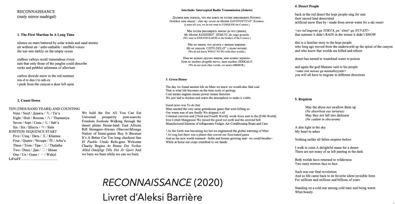 As is shown by his works that refer to text without necessarily setting it to music, the inclusion of text is not only for a composer a way to convey meaning and take stands in a way that is not directly available through music alone; in Koskinen’s case, it also expresses the need to confront impulses that provoke the compositional process into new paths. This characteristic trait is a symptom of a broader need of constantly renewing material. An invariable stand of Koskinen’s over the years has been the refusal of repetition and imitation of oneself or others, whether in the form of traditionalism or fashionable systems and formulas that come and go in the musical avant-garde – or anything that comes to be formatted by market forces / inspires some to format themselves for them, as he would write himself in an article about the imitators of Einojuhani Rautavaara who aspired to the Finnish master’s commercial success[2]. Koskinen’s own path has been a constant navigation of this principle and a struggle against global cultural uniformization and homogenization driven by market forces and hegemonies, of which music and languages are a symptom and a vehicle as their diversity is threatened. Such a path could find its originality through external influences, in particular extra-musical ones, and thus opera has been a natural part of that process.